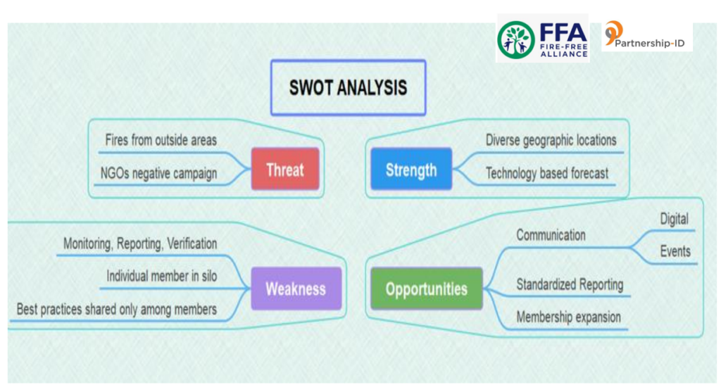 Sejumlah kelemahan (Weakness) juga secara objektif dikemukan oleh para stake holder dari berbagai langkah yang diambil selama ini. Pada gilirannya, sebuah ”joint operation”, langkah bersama, nyatanya muncul menjadi kebutuhan yang dirasakan mendesak untuk segera disikapi. Sementara faktor “Threat” atau Ancaman, secara umum berasal dari kondisi eskternal para stake holder, mulai dari pihak ke-3 yang justru kerap memiliki tujuan tersendiri, munculnya pandemic Covid 19 hingga titik-titik api yang kadang berada diluar kontrol area konsesi mereka.