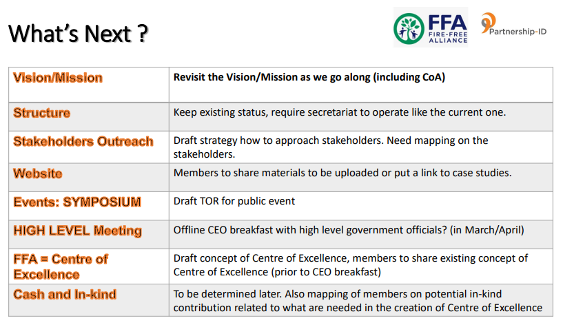 Pertemuan dari para member FFA ini merupakan upaya memantapkan keberadaan Fire-Free-Alliance, FFA, sebagai perkumpulan para pelaku usaha kehutanan yang peduli dengan isu kebakaran hutan beserta upaya-upaya mitigasi dan penanggulangannya. Terdapat 3 (tiga) pertemuan yang direncanakan, dan terlaksana lewat dua sesi pertemuan pada tanggal 3 September 2021 dan dilanjutkan pada 10 Januari 2022. Kami menurunkan hal-hal pokok yang layak diketahui oleh publik guna memperoleh gambaran mutakhir tentang dinamika FFA dalam menangani isu-isu yang melingkupinya.