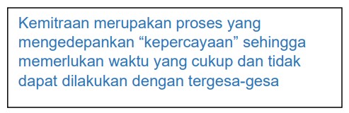 Materi tulisan ini dikutip dari buku “Kemitraan TNP2K Bappenas”, 2019. Tim Partnership – ID menyajikan ulang materi-materi yang terdapat di dalamnya agar dapat menjadi pembelajaran berharga bagi semua pihak yang bermaksud melakukan program kemitraan dalam berbagai bidang. Bahasan dari buku ini tentu memiliki kelebihan karena berbasis pada kasus-kasus program kemitraan yang telah dan masih berjalan dalam rangka pengentasan kemiskinan di Indonesia.