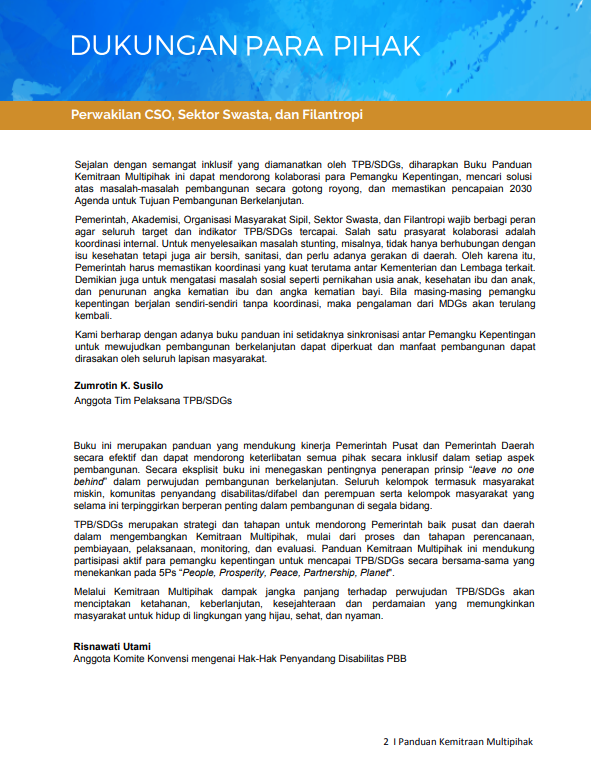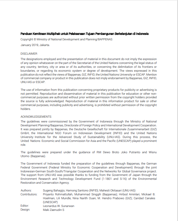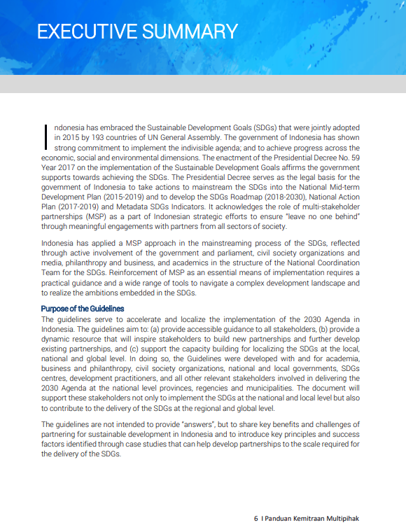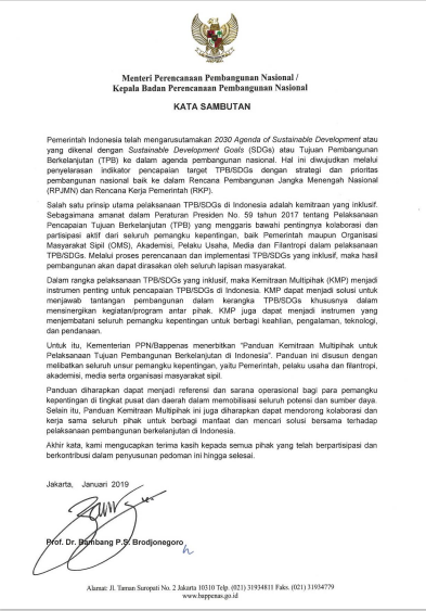 untuk Pelaksanaan Tujuan Pembangunan Berkelanjutan di Indonesia