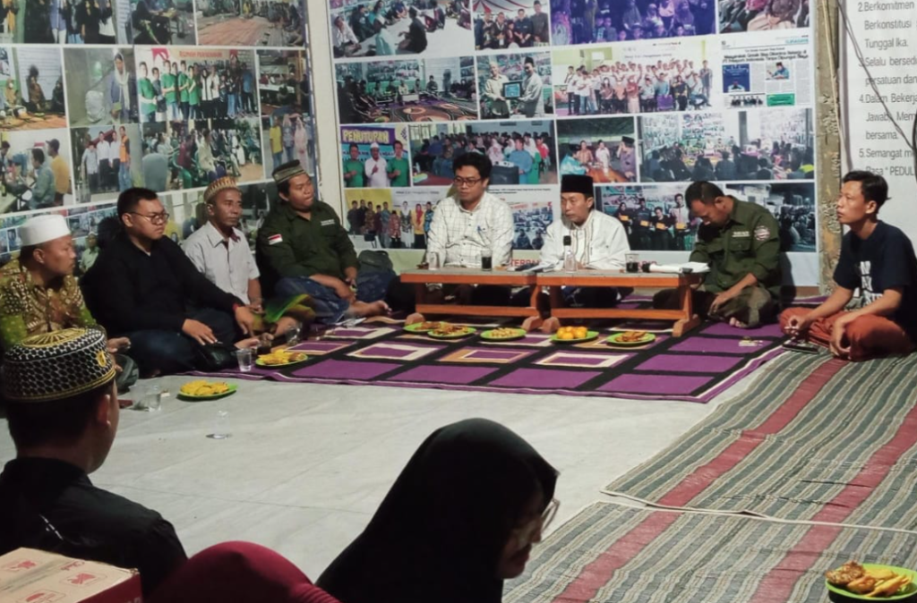Puluhan warga, pria wanita, nampak duduk lesehan dengan santai di ruangan berukuran 8 x 8 meter dengan dinding yang dipenuhi aneka poster dan spanduk. Peserta diskusi bahkan sampai meluber hingga teras bangunan yang merupakan kantor Sekretariat Tim “Santri Nusantara Bersatu”. Dengan banyaknya pria berpeci, berbaju koko dan sarungan diantara yang hadir, nuansa pengajian ala santri tak pelak hadir pada pertemuan malam hari itu.