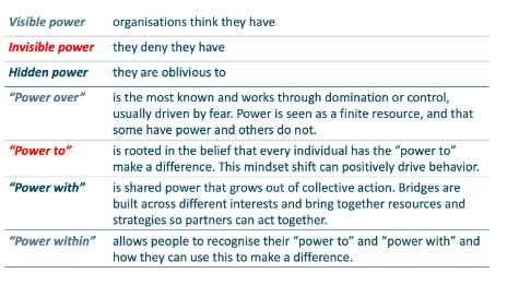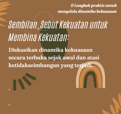 Dinamika kekuasaan meliputi seluruh hubungan, termasuk kemitraan, yang dapat terlihat, tidak terlihat, atau tersembunyi. Konsep tradisional tentang kekuasaan, yang diasosiasikan dengan dominasi dan kontrol, sering kali menimbulkan ketidakseimbangan dan menghambat pertumbuhan bersama. Meskipun demikian, kekuasaan itu sendiri bukanlah musuh; hal itu hanyalah alat. Pengaruhnya terutama bergantung pada pemanfaatannya. Kekuasaan dapat dibagi, dilipatgandakan, dan digunakan secara kolektif untuk kesejahteraan bersama, meningkatkan kepercayaan, kolaborasi, dan tanggung jawab bersama.