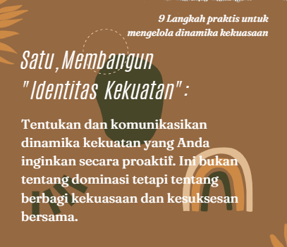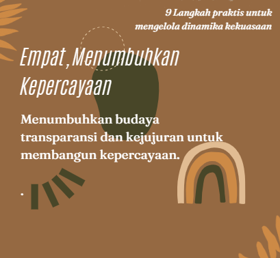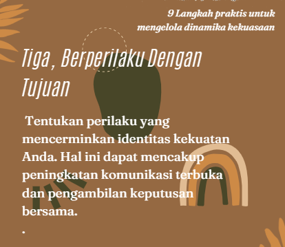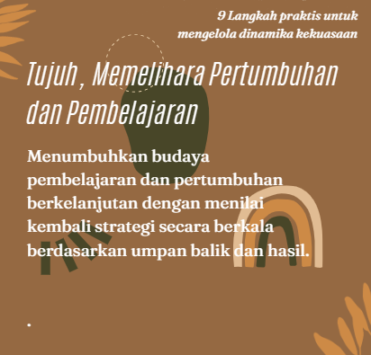Berdasarkan pengalaman selama ini, saya menyimpulkan dan mencatat 9 (sembilan) langkah praktis untuk mengelola dinamika kekuasaan, yang meliputi hal-hal sebagai berikut: